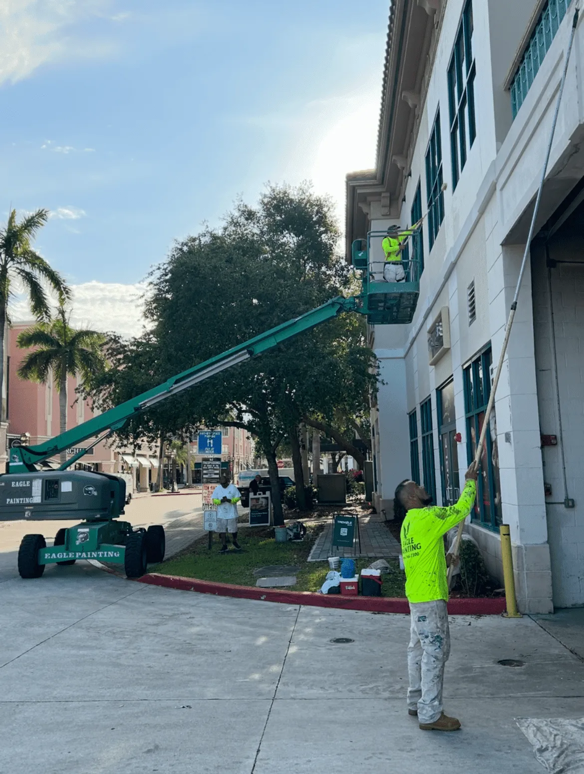 Our technicians make you feel comfortable. For the Exterior, the first step is Pressure cleaning all the surfaces to be painted. A uniformed technician arrives in an eagle painting truck complete with water tanks and mildewcide tanks. The next phase is when the painters arrive to apply a sealer/primer to all walls.